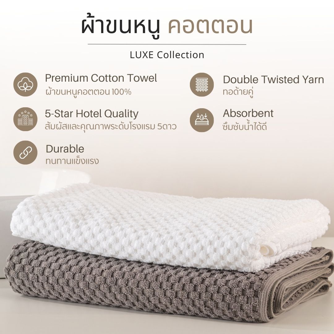 - ให้ความรู้สึก, สัมผัส และคุณภาพระดับผ้าขนหนูโรงแรม 5ดาว