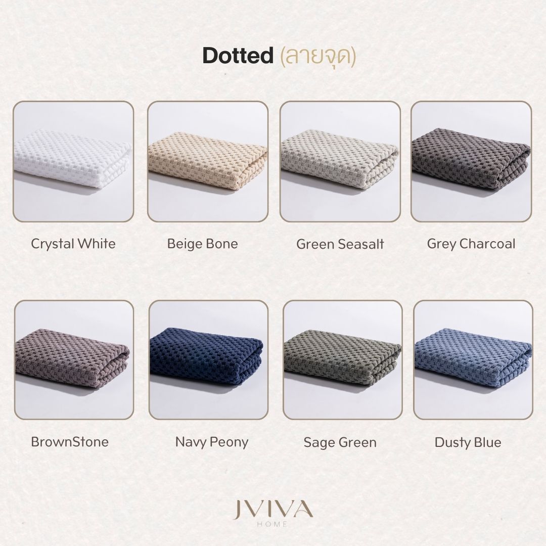 Jviva ผ้าขนหนูคอตตอน เช็ดหน้า (12x12 นิ้ว) Cotton Towel - Luxe Collection ลายจุด (Dotted)