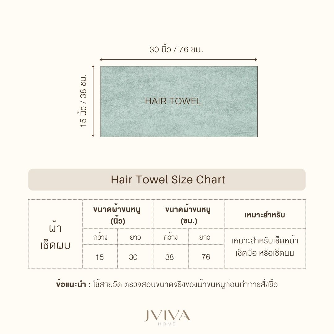 - ผ้าเช็ดหน้า/เช็ดมือ/เช็ดผมใยไผ่ ขนาด 15x30 นิ้ว = 38x76 ซม.