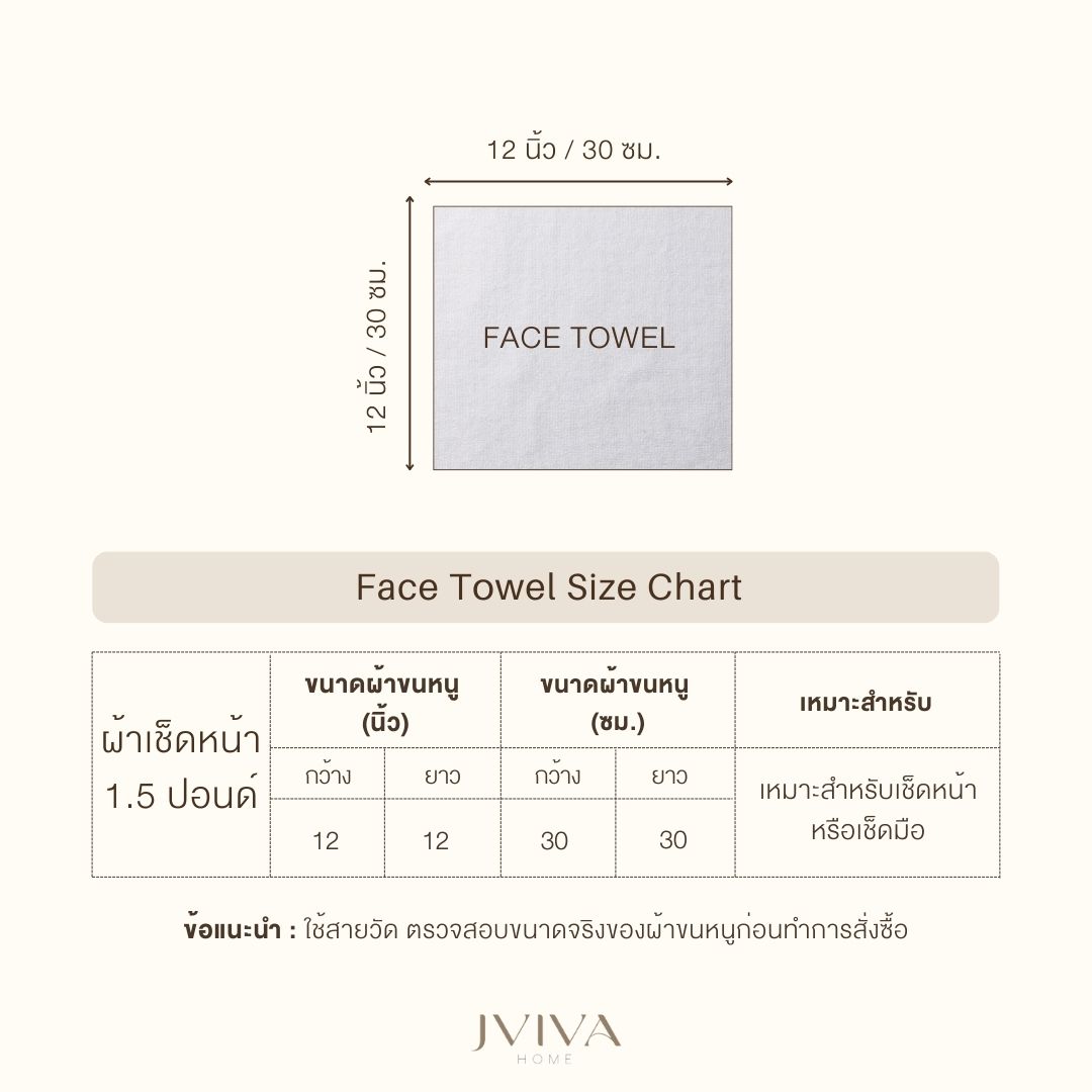 ผ้าเช็ดหน้า/เช็ดมือ : ขนาด 12x12 นิ้ว = 30x30 ซม.(1.5 ปอนด์)